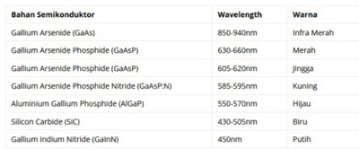 LED atau singkatan dari Light Emitting Diode adalah salah satu komponen elektronika yang terbuat dari bahan semi konduktor jenis dioda yang mempu mengeluarkan cahaya. Strukturnya juga sama dengan dioda, tetapi pada LED elektron menerjang sambungan P-N (Positif-Negatif). Untuk mendapatkan emisi cahaya pada semikonduktor, doping yang pakai adalah galium, arsenic dan phosporus. Jenis doping yang berbeda menghasilkan warna cahaya yang berbeda pula.